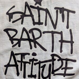 Bring a splash of island cool to your kid’s wardrobe with this American Apparel t-shirt featuring the bold “Saint Barth Attitude” graphic on the back. Made for the French market, this youth size 10 tee is crafted from soft, lightweight 100% cotton in a gorgeous baby blue color.