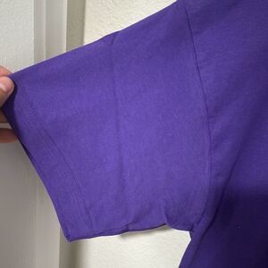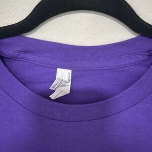 A vibrant and trendy addition to your wardrobe! Made from cotton material, this t-shirt offers both style and comfort. Featuring a unique Wizard of Oz design in a striking purple color, this shirt is perfect for fans of the classic movie or anyone looking to make a bold fashion statement. Whether you're out running errands or relaxing at home, this shirt is sure to turn heads and showcase your love for this iconic film. Upgrade your casual outfit with this eye-catching and high-quality t-shirt from American Apparel.