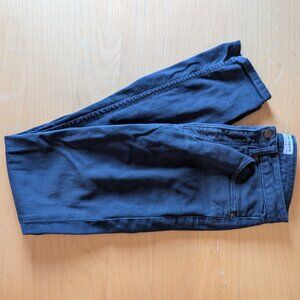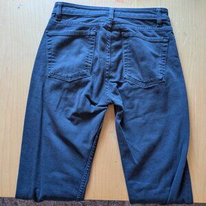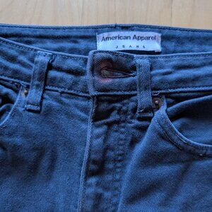 Slim fit unisex pants, a little older from when American Apparel was a wholly independent company but still in great shape! Though tagged as jeans, the material is softer and not typical denim. Minor discoloration around the button fly from the metal button, pictured.