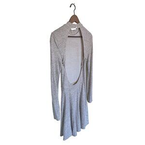 American Apparel Oatmeal Heather Long Sleeve Open Back Skater Dress, Size Medium