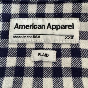 American Apparel Plaid Flannel Shirt Mens XXS Long-sleeve Button-up White Blue