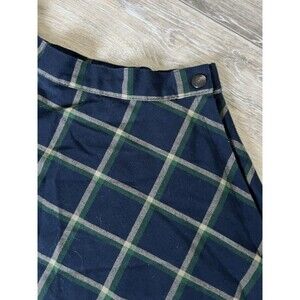 This American Apparel plaid mini skirt in green and blue is a versatile piece perfect for various occasions such as casual wear. The skirt features a button closure, pleated accents, and a mid-rise fit. Made from polyester knit fabric, this skirt is designed for all seasons and is a stylish choice for those who appreciate school, American, punk, and retro themes. With its 90s retro vibe and preppy style, this skirt is a must-have for any fashion-forward individual.