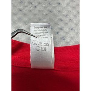 This American Apparel red crewneck tee in medium size features a bold "Don't Count On It 8 Ball" graphic. Unisex and crafted from 100% cotton.