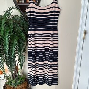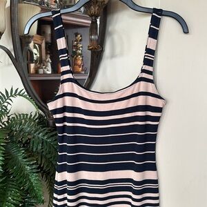 American Apparel Tan & Black Striped Tank Midi Dress Bodycon Rayon Blend.