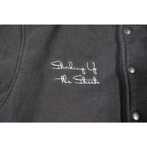 American Apparel Varsity Jacket Mens Large Black White Skunk Stinking Up the Streets