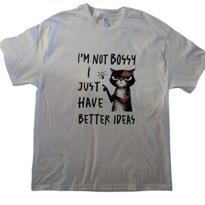 White short sleeve tee with bold graphic. Comfortable and stylish. Perfect for casual wear.