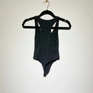 American Apparel Womens Black Open Back Deep V-Neck Bodysuit Size S