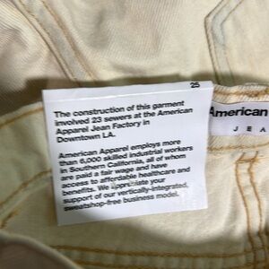 American Apparel size 25 denim high waisted cuffed shorts, cream colored, new with tags. Rise is 12.5”
