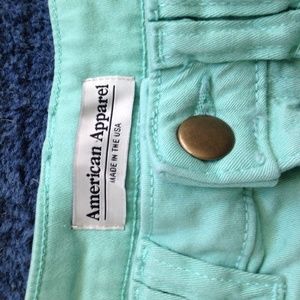 Mint green, high waisted American apparel shorts! So comfy and cute and only worn once!