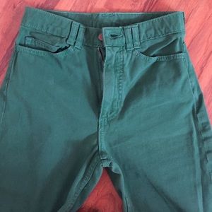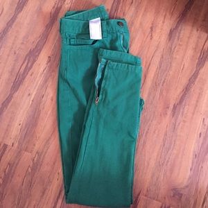Dark green, size 24/25. Zippered bottoms! Super cute. Bought on here, didn't fit.