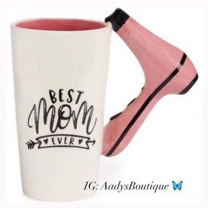 American Atelier 3-D “Best Mom Ever” Mug Hair Dryer Handle White Pink 16.0oz NWT