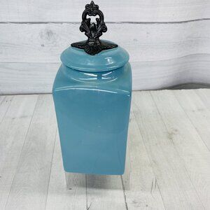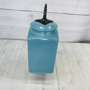 American Atelier At Home Teal Blue Square 12" Tall Rubber Seal Lid Canister Jar