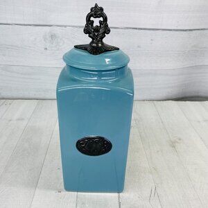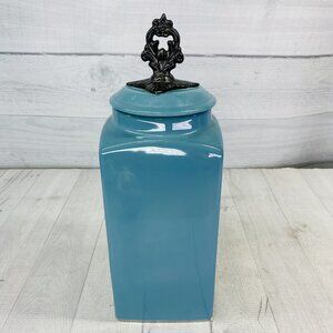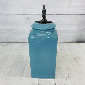 American Atelier At Home Teal Blue Square 13" Tall Rubber Seal Lid Canister Jar