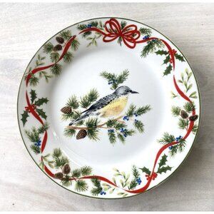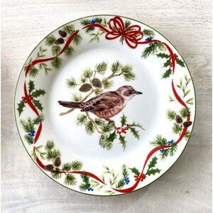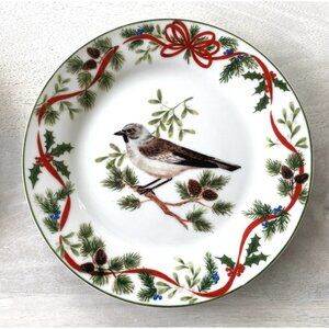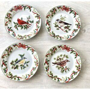 American Atelier CHRISTMAS WOODLAND BIRDS Set Of 4 Dessert Salad Plates 8”