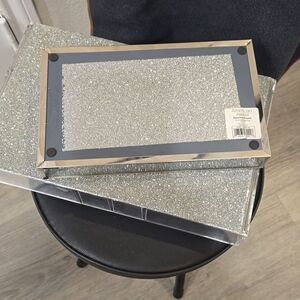 Add a touch of elegance to your bathroom with this silver vanity tray. Perfect for organizing your essentials in style.