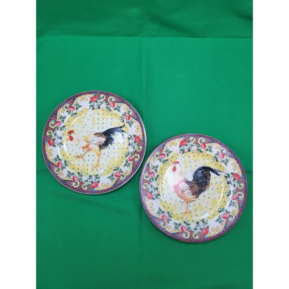 Two American Atelier at Home Petite Provence Rooster salad plates. Like new no chips cracks or crazing.