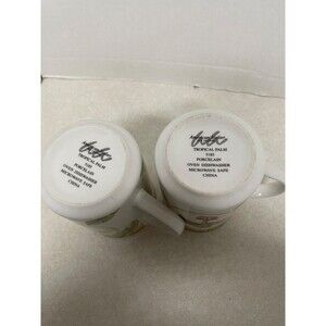 PREOWNED AMERICAN ATELIER SET OF 2 TROPICAL PALM PORCELAIN MUGS # 5185 IN VERY GOOD CONDITION
