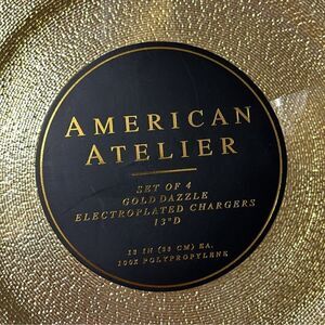 American Atelier Set of 4 Gold Dazzle Electroplated Charger 13” Plates