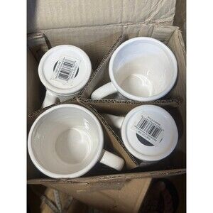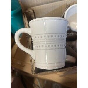 American Atelier White Beaded Stoneware Mugs Set of 4 – Farmhouse Coffee Cups