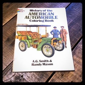 History of American Automobile Coloring Book by A. G. Smith & Randy Mason - 1990. Condition is Good. Was bought used from library so as seen in pictures there are library stamp marks and front and back cover had protective lamination over it. In very good collectible condition!