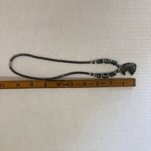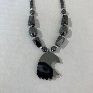 The necklace features a striking hematite eagle design with geometric beads, adding a bold accent to any outfit. Easy clasp closure enhances convenience.
