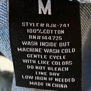 American Bazi Denim Blue Jean Jacket Distressed Long Length Size M
