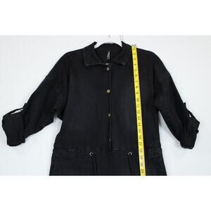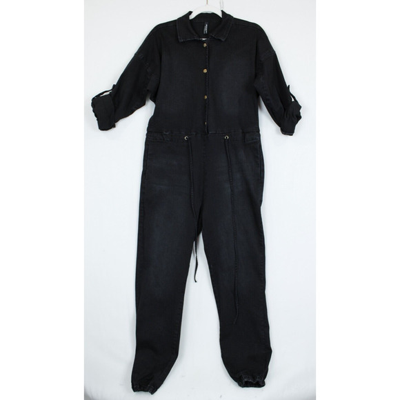 American Bazi Denim Jumpsuit Women S Loose Chain Cut Out Back Stretch Black Roll Tab Sleeves Jogger Pants