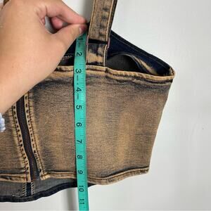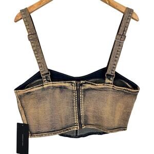 NWT American Bazi Los Angeles Over-dyed Acid Copper Crop Denim Corset Top