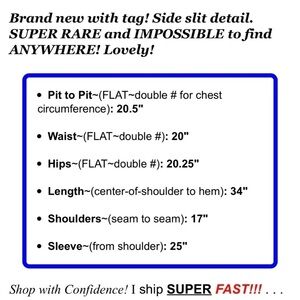 Brand new with tag! Distressed Cut Side slit detail on each side (see photo). SUPER RARE and IMPOSSIBLE to find ANYWHERE! Lovely!