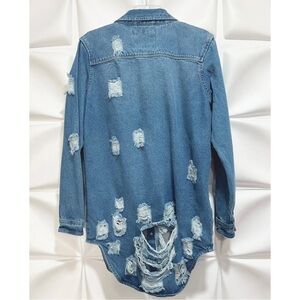 American Bazi Sz M Long Tunic Distressed Ripped Denim Duster Jacket NEW