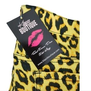 American Bazi ~Woman Plus Size 3X~Yellow/Black Animal Print Pants Cotton Blend NWT.