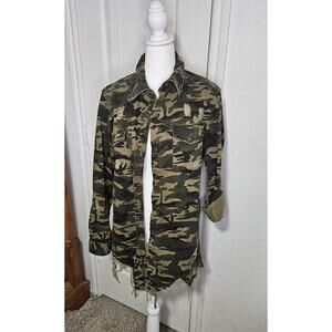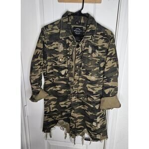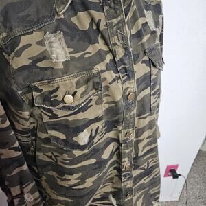 American Bazi Women's Denim Camo Shacket/Jacket Distressed Button-up