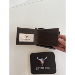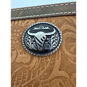 American Bison Men's Bison Head Concho Bifold Brown Leather Wallet NIB Tooled