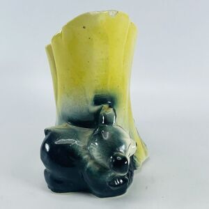 American Bisque Pottery Kitsch Black Bear Cubs Tree Stump Planter Vase VTG 1940s