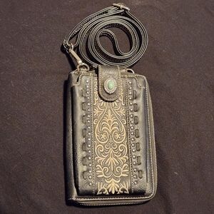 American Bling Black Faux Leather Studded Crossbody Phone Wallet Purse