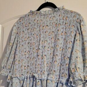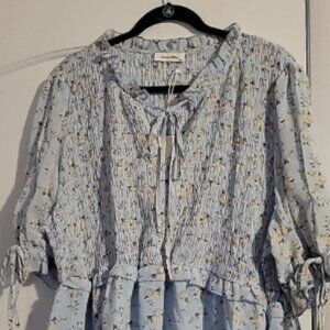 Beautiful lightweight lined PeplumBlouse from American Bling. It is light blue with flowers. It is a size 3x, with tags.