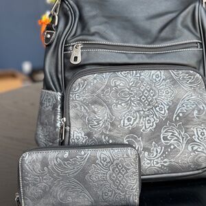 Matching wallet and handbag set.
