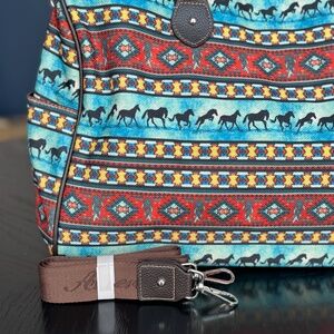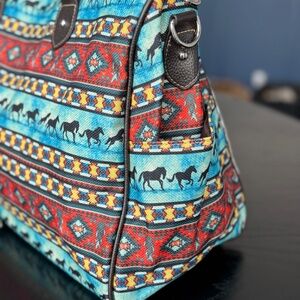 Inside of the bag includes a zippered pocket and 2 open pockets