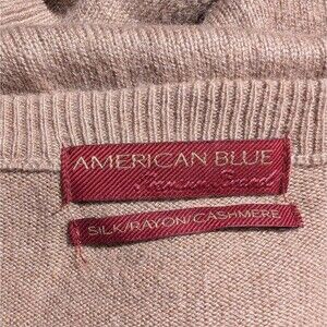 American Blue Men's Argyle Sweater V-Neck Tan Brown Plaid Size Medium Silk Blend
