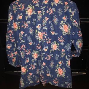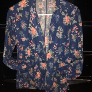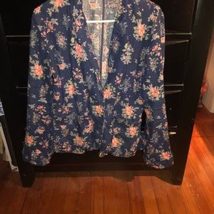dress up or down blue flower blazer. In good condition,the tag is not dirty it's a beige color tag. blazer has a collar as well with a stylish split on bottom back and has pockets