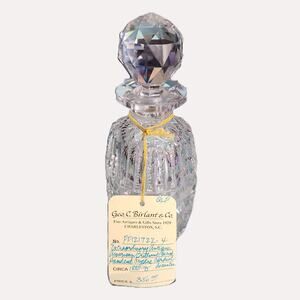 Extraordinary, cut glass oval shaped cologne bottle/liquor decanter, made by Dorflinger during the American Brilliant Period. This pattern was called the "Middlesex" which has since been changed to the "Marlboro", an incredibly beautiful, light catching pattern with the matching round cut glass stopper.