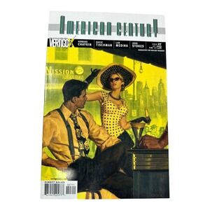 Dive into the captivating world of American Century with this striking comic book, issue number 27, published under the Vertigo imprint of DC Comics. The cover art immediately draws you in, depicting a scene straight out of a noir film, complete with period attire and a sense of mystery. Inside, the narrative unfolds with intricate storytelling and compelling characters, characteristic of the Vertigo line's mature themes and artistic depth. As a bonus, this issue includes a "Play Big" advertisement for Magic: The Gathering, offering a glimpse into the popular trading card game's early marketing efforts and adding a layer of nostalgia for collectors of both comics and gaming memorabilia. This comic is a tangible piece of sequential art history, inviting you to explore its pages and immerse yourself in its unique blend of genres and styles.