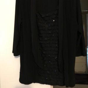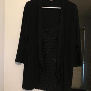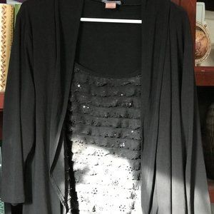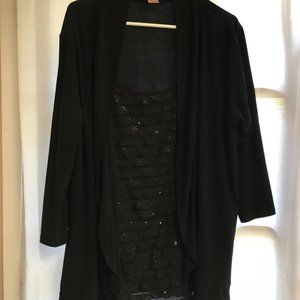 American City Wear 3X black jacket tunic with sparkly mock tank attached.