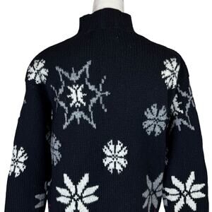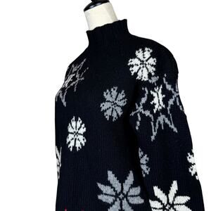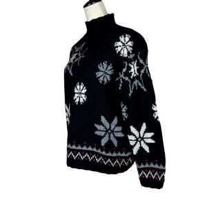 American Collection Black 100% Wool Tight Knit Turtleneck Snowflake Sweater
