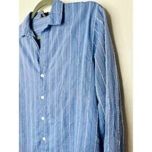 American Colors Denim Blue White Fuzzy Stitch Stripe Button Shirt M