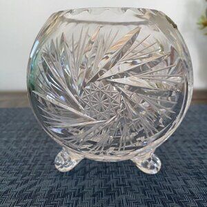 American Cut Crystal Corp Czech Footed Round Rose Vase