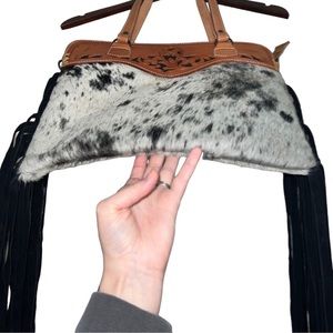 American Darling Black and White Cowhide Fringe Purse/Crossbody