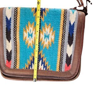 Gorgeous western bag by American Darling. This square Crossbody features a colorful geometric design with brown leather. The bag has inner pockets, plus an additional zip pocket under the flap that's perfect for a phone or sunglasses. New bag, no tag. 13 X 11 X 3