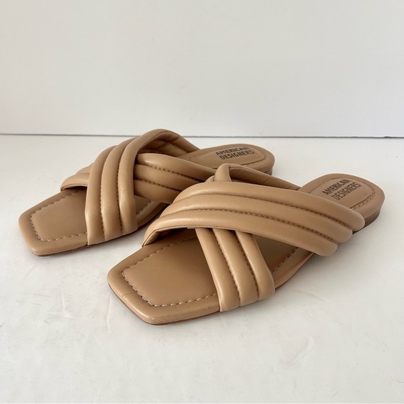 American Designers by Badgley Mischka Slide Sandal Shoe Puffy Strappy Tan Size 8