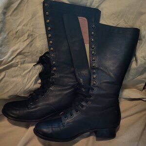 American Duchess Bessie black leather Aviator Boots (women's 9)